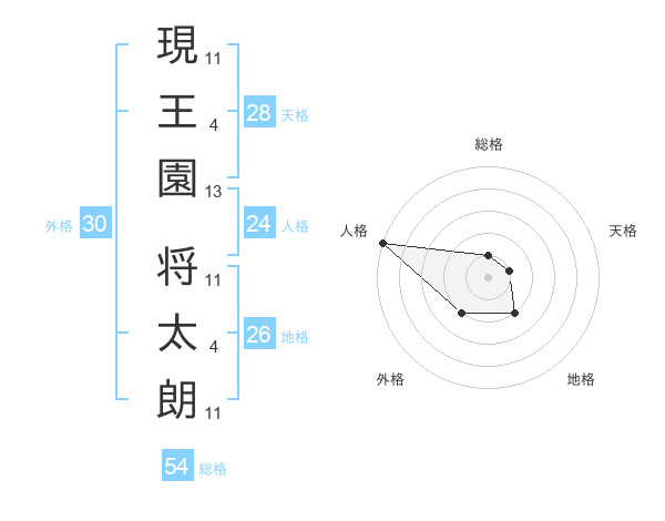 現王園 将太朗さんを姓名の画数から五運を鑑定