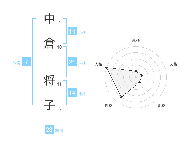 中倉 将子さんの天格は14画の1点!