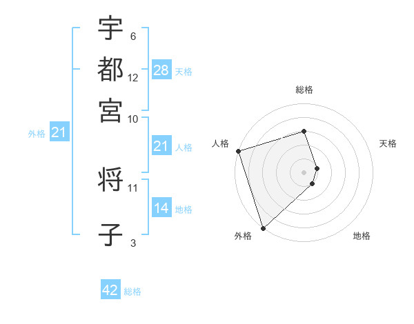 宇都宮 将子さんを姓名の画数から五運を鑑定