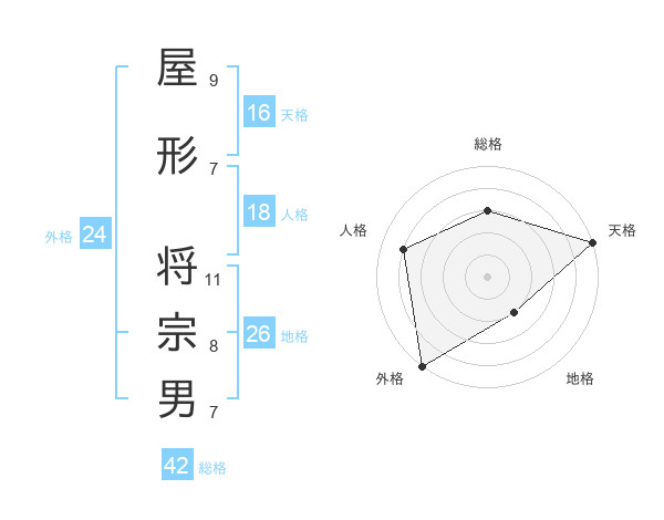 屋形 将宗男さんを姓名の画数から五運を鑑定