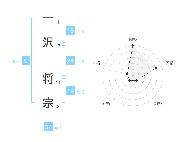一沢 将宗さんの総格は37画の5点!