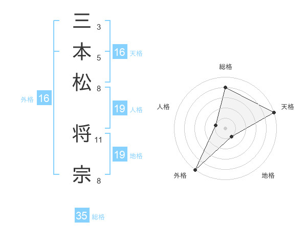 三本松 将宗さんを姓名の画数から五運を鑑定