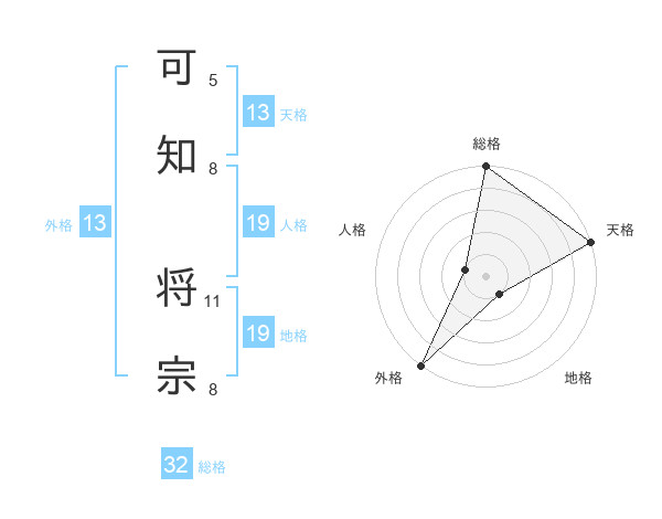 可知 将宗さんの外格は13画の5点!