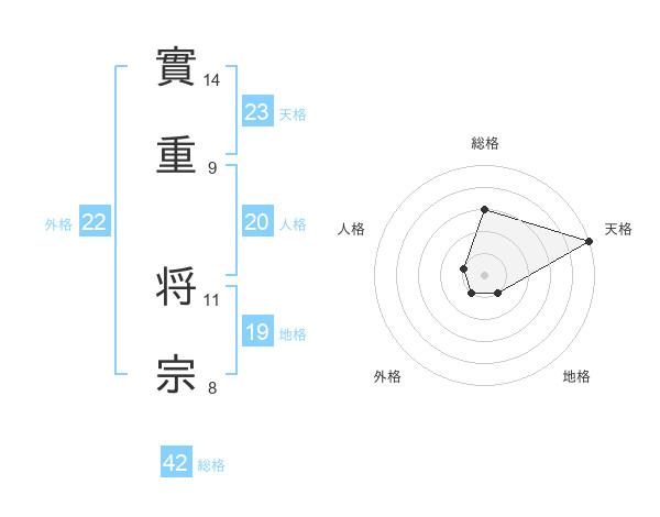 實重 将宗さんの天格は23画の5点!