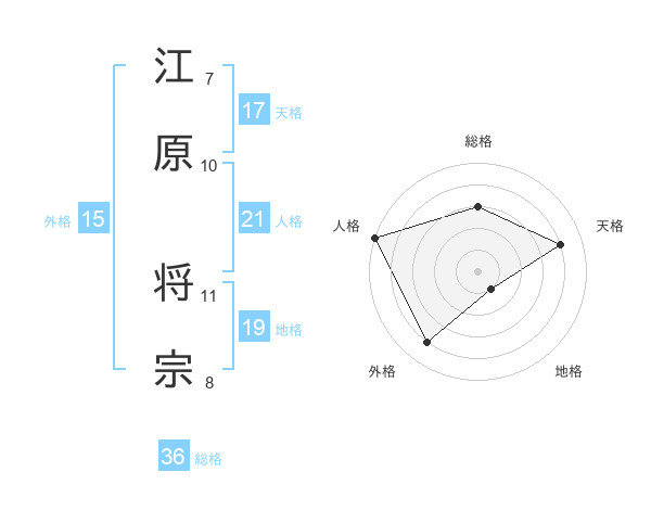 江原 将宗さんの天格は17画の4点!