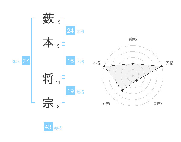 薮本 将宗さんを姓名の画数から五運を鑑定