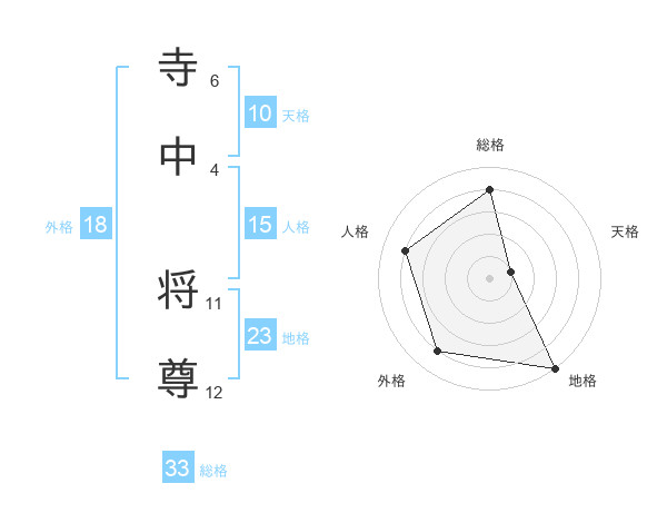 寺中 将尊さんの総格は33画の4点!