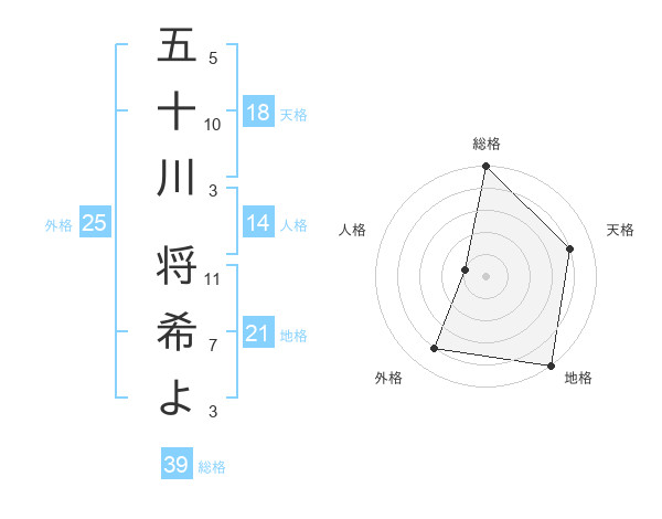 五十川 将希よさんを姓名の画数から五運を鑑定