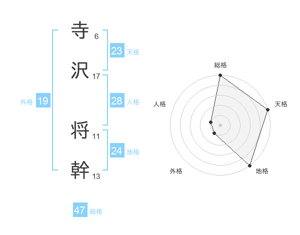 寺沢 将幹さんの総格は47画の5点!