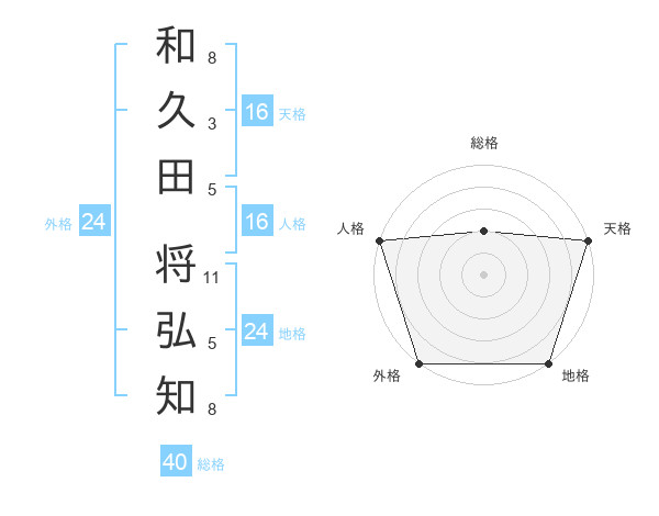 和久田 将弘知さんの地格は24画の5点!