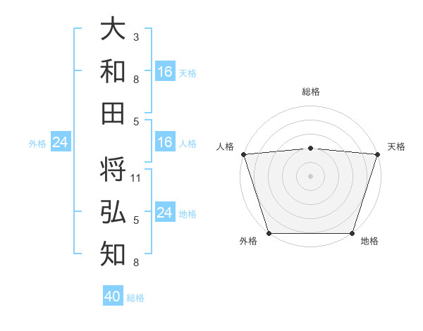 大和田 将弘知さんを姓名の画数から五運を鑑定