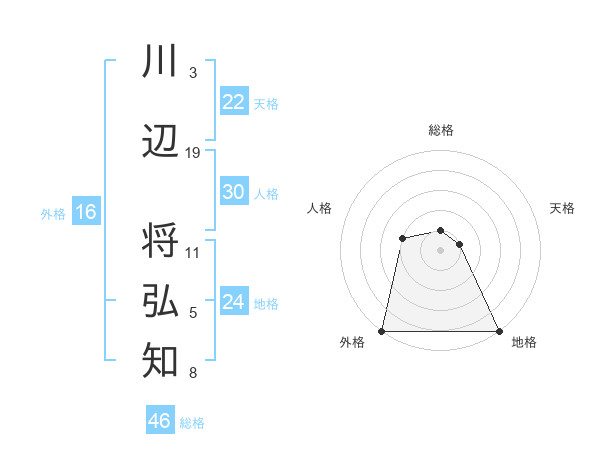 川辺 将弘知さんを姓名の画数から五運を鑑定