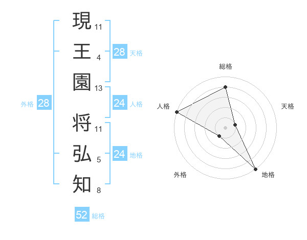 現王園 将弘知さんを姓名の画数から五運を鑑定