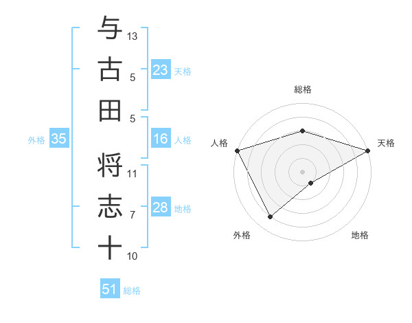 与古田 将志十さんの天格は23画の5点!
