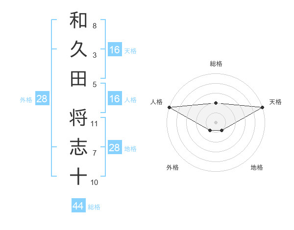 和久田 将志十さんを姓名の画数から五運を鑑定