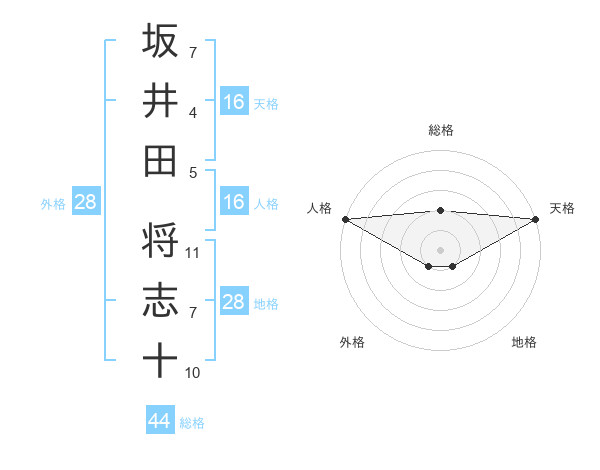 坂井田 将志十さんを姓名の画数から五運を鑑定
