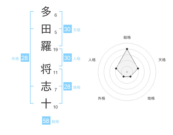 多田羅 将志十さんを姓名の画数から五運を鑑定
