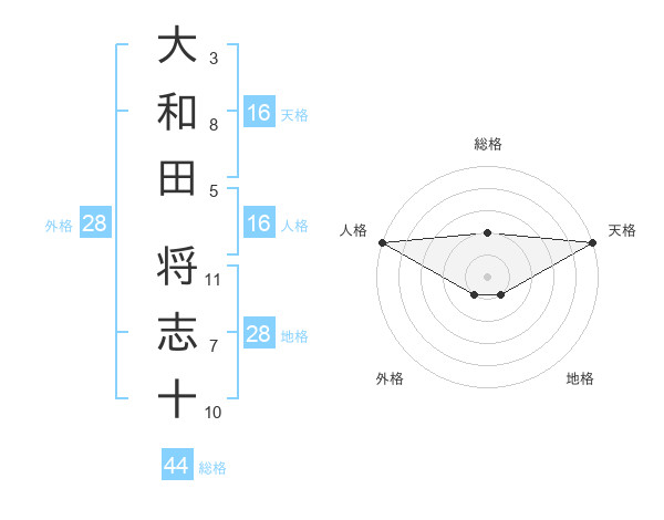 大和田 将志十さんの天格は16画の5点!