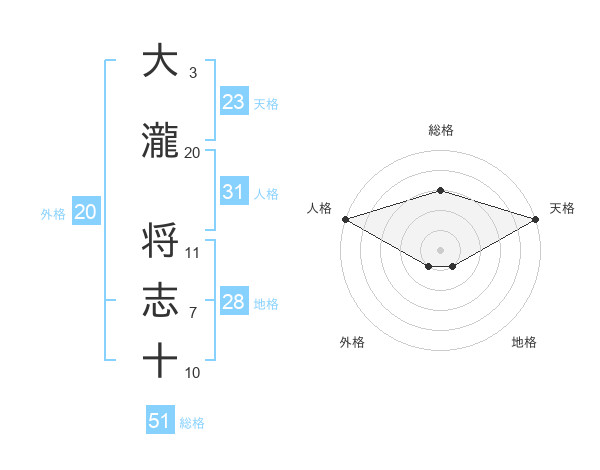 大瀧 将志十さんを姓名の画数から五運を鑑定