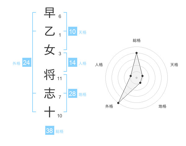 早乙女 将志十さんを姓名の画数から五運を鑑定
