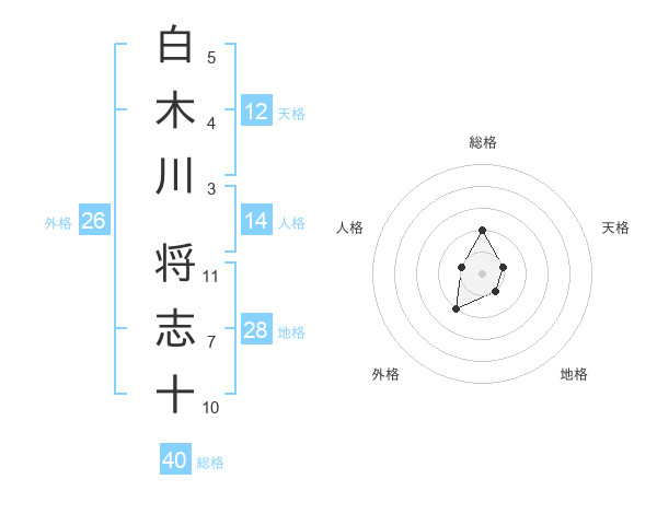 白木川 将志十さんを姓名の画数から五運を鑑定