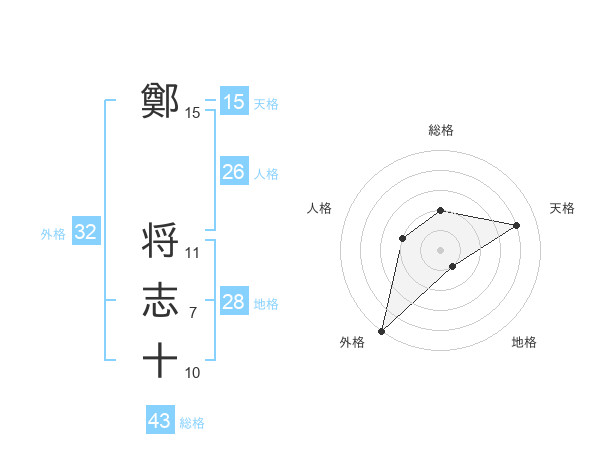鄭 将志十さんの外格は32画の5点!