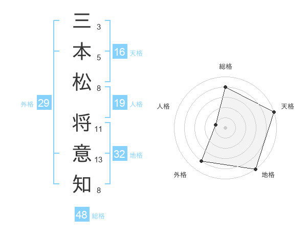 三本松 将意知さんの地格は32画の5点!