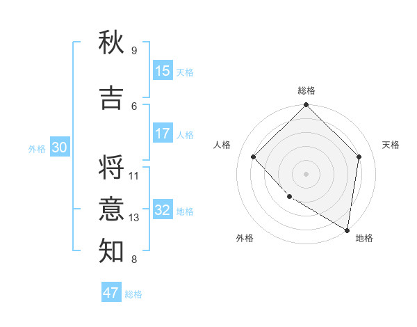 秋吉 将意知さんを姓名の画数から五運を鑑定