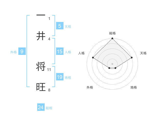 一井 将旺さんを姓名の画数から五運を鑑定