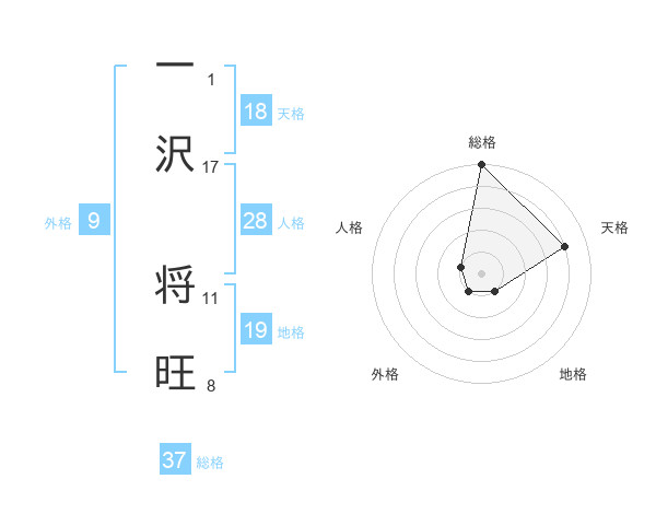 一沢 将旺さんの総格は37画の5点!