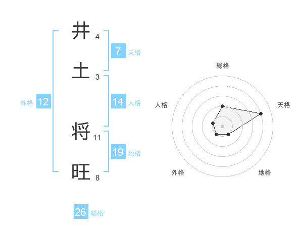 井土 将旺さんの総格は26画の2点!