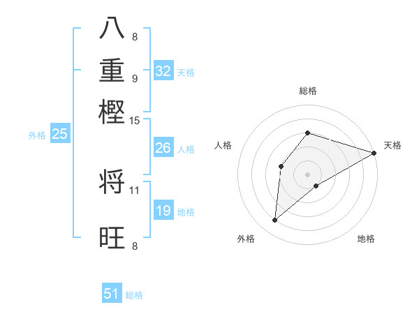 八重樫 将旺さんの総格は51画の3点!