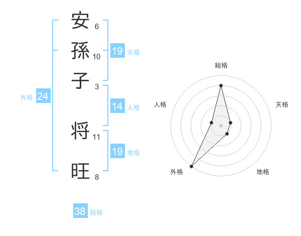 安孫子 将旺さんの総格は38画の4点!