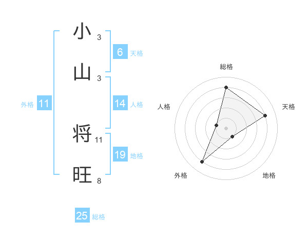 小山 将旺さんの総格は25画の4点!