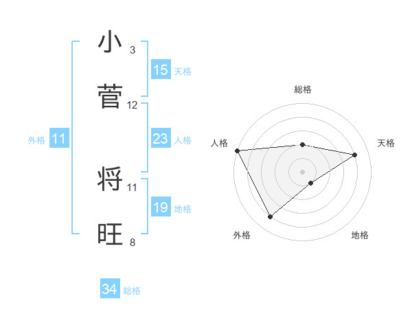 小菅 将旺さんを姓名の画数から五運を鑑定
