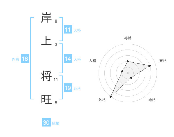 岸上 将旺さんを姓名の画数から五運を鑑定