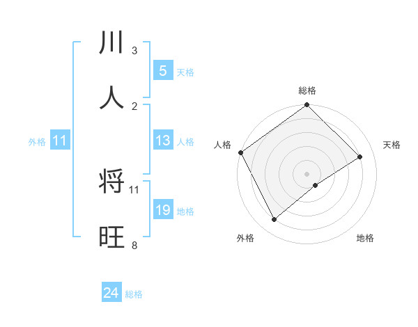 川人 将旺さんの外格は11画の4点!