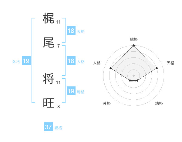 梶尾 将旺さんの総格は37画の5点!