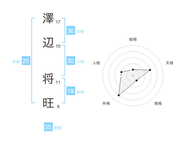 澤辺 将旺さんの総格は55画の1点!