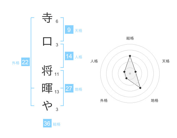 寺口 将暉やさんを姓名の画数から五運を鑑定