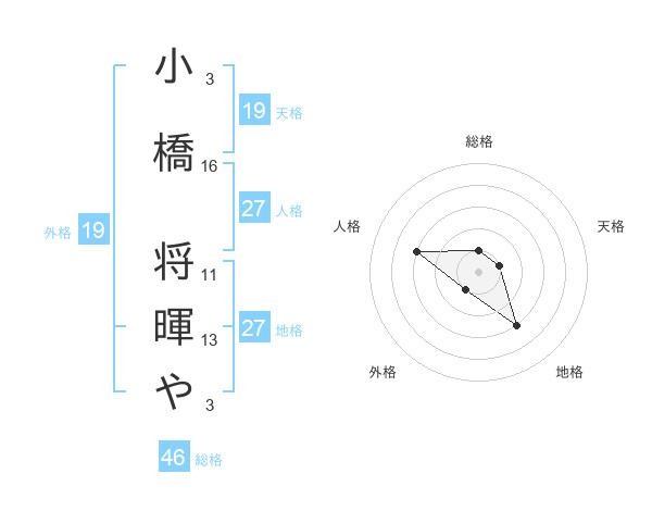 小橋 将暉やさんを姓名の画数から五運を鑑定