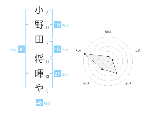 小野田 将暉やさんを姓名の画数から五運を鑑定