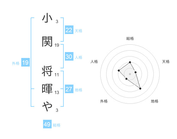 小関 将暉やさんを姓名の画数から五運を鑑定