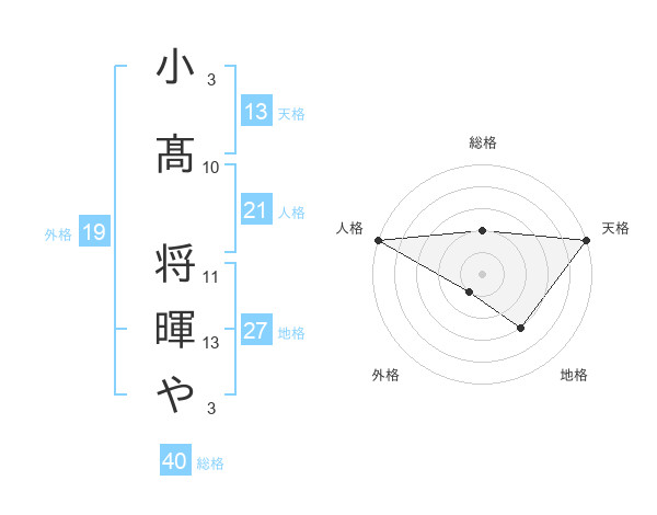 小髙 将暉やさんを姓名の画数から五運を鑑定