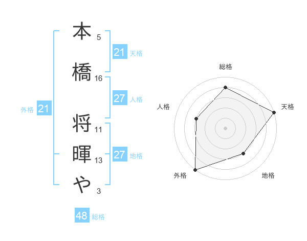 本橋 将暉やさんを姓名の画数から五運を鑑定