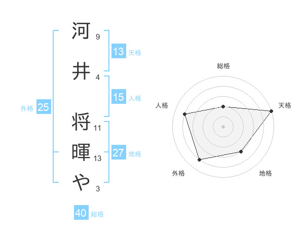 河井 将暉やさんの地格は27画の3点!