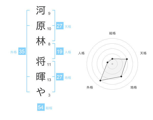河原林 将暉やさんを姓名の画数から五運を鑑定