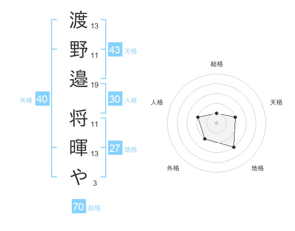 渡野邉 将暉やさんを姓名の画数から五運を鑑定