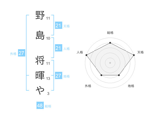 野島 将暉やさんを姓名の画数から五運を鑑定
