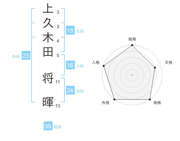 上久木田 将暉さんの総格は39画の5点!